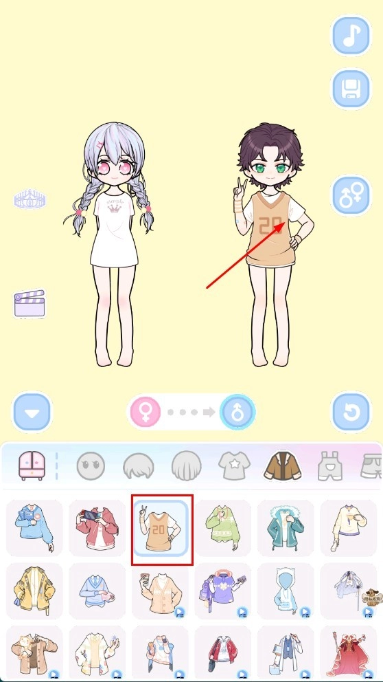从衣柜里选好衣服后,直接拖到角色身上就行。点一下单个衣物,可以微调它的大小和位置。用手指放大缩小,就能看清服装的细节了。