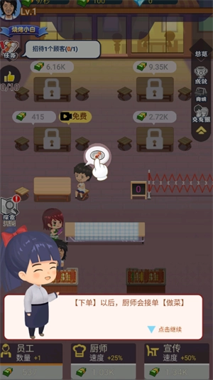 下单以后厨师会接单做菜,长按厨师会加速做菜流程
