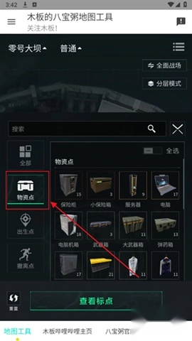 点位标记功能:此工具对物资点(像保险柜、服务器之类)、出生点、撤离点以及首领位置等都进行了详细标注,而且还能按照不同类别进行筛选。