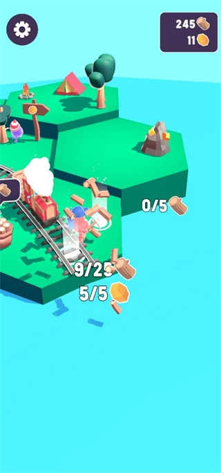 2、旁边有树木开始过去收取木材,然后慢慢的去建设我们的火车;