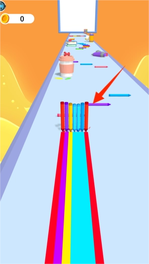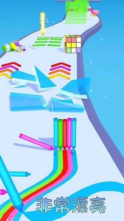 在前进的路上收集彩色画笔能够提升积分,不一样颜色的笔刷会带来额外的奖励。碰到移动的障碍物时要提前预估它们的移动路线,谨慎地绕开。