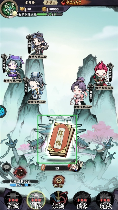 通过战斗积累资历,吸引更多高资质侠客拜入宗门,持续优化弟子阵容。