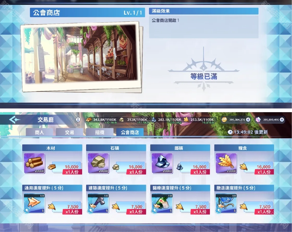 【势力建筑升级】需要消耗成员捐献的资源,不同建筑升级对会员带来的效果也不同。