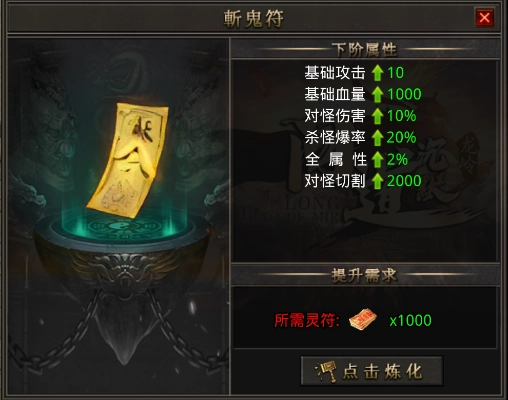 炼化灵符能够增强对怪物的伤害输出、提高击杀怪物时的掉落概率、增加全属性数值,还能提升对怪物的切割效果,从而显著增强战斗力。