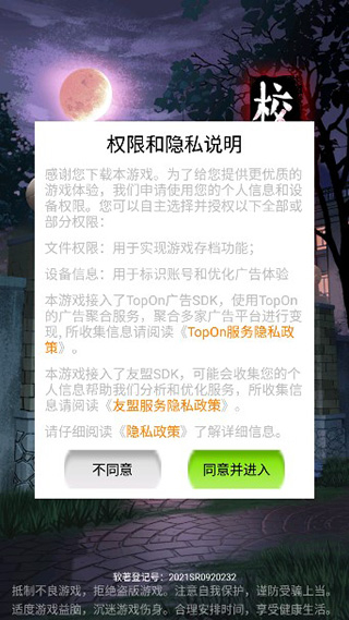 1、安装本站提供的校怨诡社游戏,进入游戏后需要授予权限;