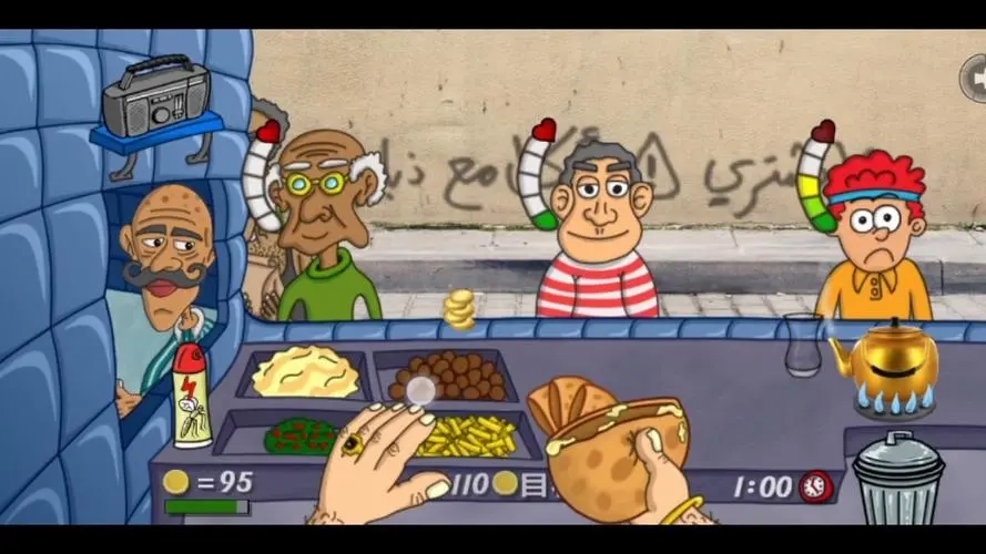 卡通设计营造受欢迎餐厅实感。角色阿拉伯语和英语配音生动。苍蝇进入需喷洒杀虫剂。关卡后难度进化百分比提升。但配音选项少,不支持多语言切换。