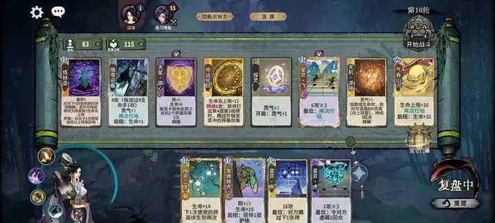 角色成长需注意:避免每个境界频繁换牌,在金丹期或元婴期集中优化卡组。对阵时需计算修为差预判先手,针对性放置防御牌。常见对策牌包括护体丹(防爆发)、弱体符(减攻)、缚仙古藤(限制再动)。