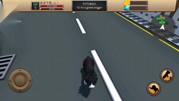 左手操控遥感移动角色,右手按钮指挥小狗攻击或跳跃。