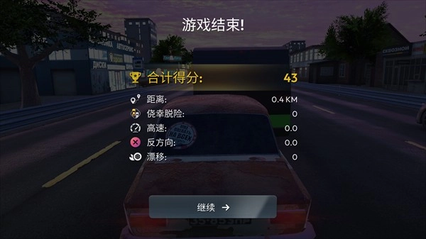 5、当车辆发生剧烈碰撞导致无法行驶时,比赛结束并统计成绩,积累金币解锁更多车型。