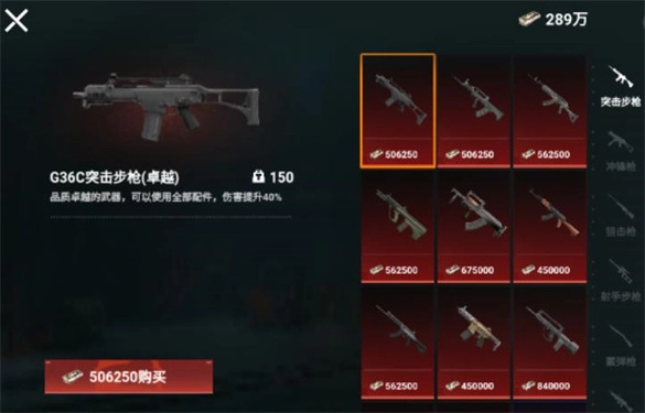 2. 根据需求挑选各类武器。