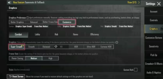 • 自定义开启:设置-画面-画面偏好-自定义-画面品质-超流畅