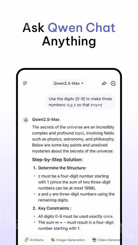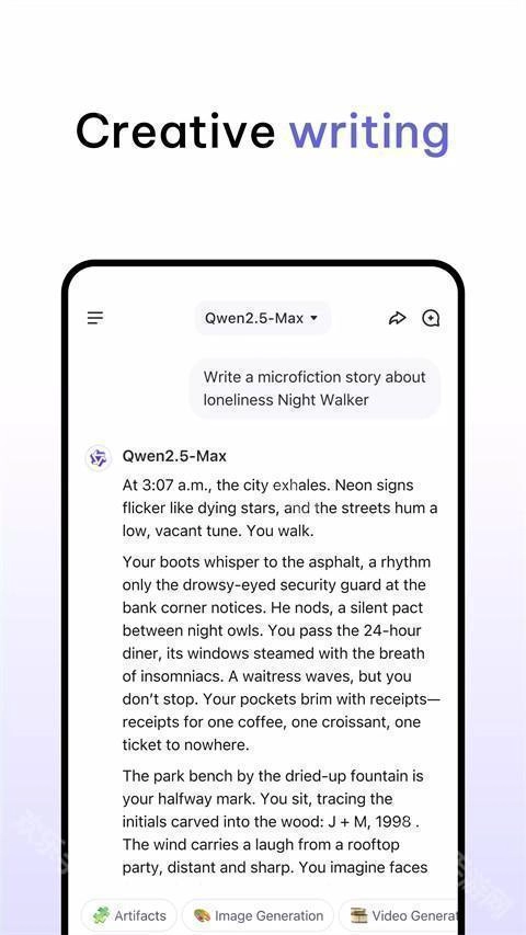 可以让QwenChat依据简洁的提示语以及详尽的段落内容,来生成对应的图像与视频。