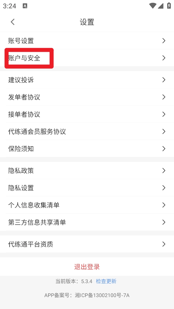 2、在设置菜单中找到账户与安全选项并进入。