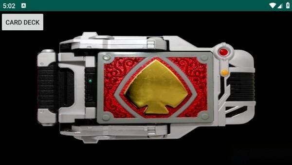 打开假面骑士剑腰带模拟器的手机版本,主角剑崎一真的变身驱动器立刻出现在眼前,而卡牌此刻还暂时放在左上角,尚未安装进去。