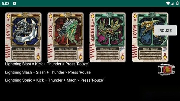 闪电音速的组合方式为飞踢蝗虫、雷电鹿与马赫美洲豹,操作时请按下“Rouze”键。