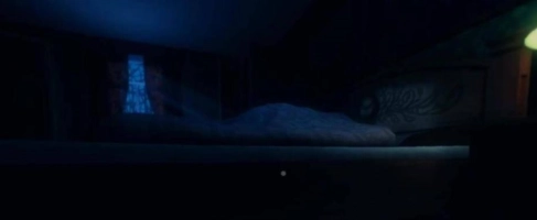 用极低的视角观察世界,家具显得异常高大,阴影也透出恐怖感,受限的视野引发强烈的未知恐惧,这是一种少见的沉浸式视角设计。