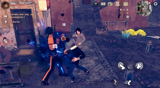 玩家可借助虚拟轮盘与按钮来操控人物进行打斗,不同的攻击方式对应着各异的动作模组。