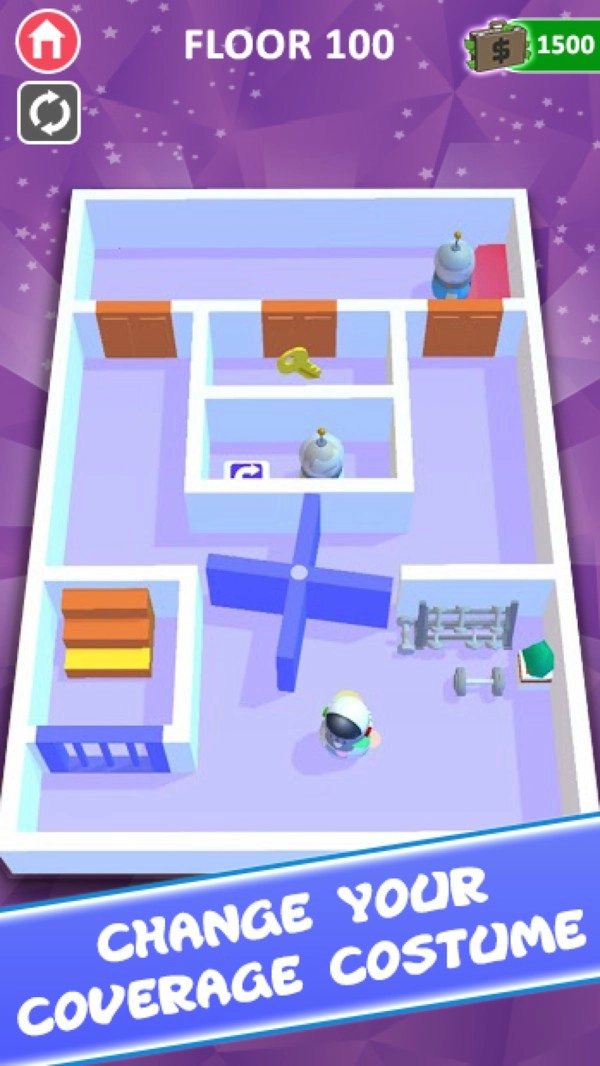玩家需要在游戏里通过简单的手指点击来操控角色移动,避开保安的视线,从而逃出这个房间。