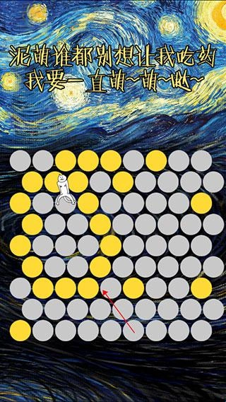 2、点击灰色的球球,就会变成黄色,将神经猫围住就可以获得胜利。
