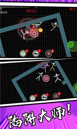 1、通过一个摇杆控制火柴人,摇杆可以左右方调整设置,玩家可以根据自己的操作手感进行随意切换;