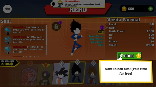 1、有许多不同的龙珠战士供玩家选择和挑战。有些简笔画英雄需要用金币解锁。