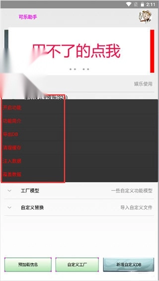 导出DB:把要开启的功能导出为DB,可以通过自定义替换来使用