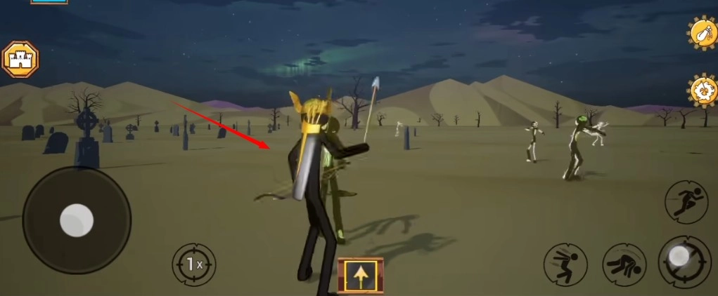 1、进入游戏后,你可以借助左侧的摇杆操控角色完成移动操作。