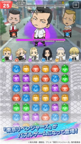 东京复仇者日服是一款相当有趣的休闲剧情三消游戏,它改编自动漫《东京复仇者》,以涩谷地区为核心舞台,不仅为玩家呈现原作的剧情故事,还加入了不少原创任务。在这里,玩家可以跟随主角结识一个又一个独特的角色,招募他们后与当地的黑暗势力展开对抗,最终实现制霸全国的目标,整体游玩体验轻松又充满乐趣。