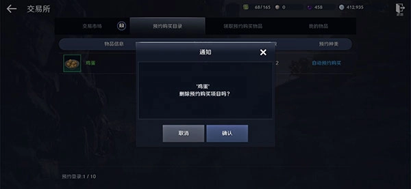 通过预约购买方式成功购买的道具,可在交易所上方的[领取预约购买物品]入口处领取。