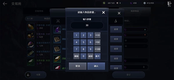点击[上限价]/[最低价]时,系统会自动为该道具在交易所上设定最高价格和最低价格。