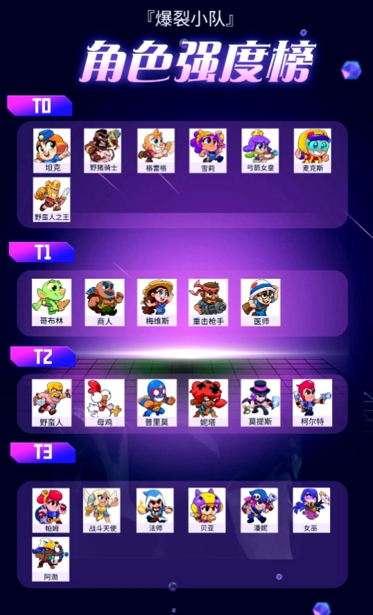 T0:坦克、野猪骑士、格雷格、雪梨、弓箭女皇、麦克斯、野蛮人之王
