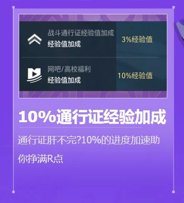 经验加成:完成游戏对局后,能额外获得10%的经验值加成,助力提升通行证进度,让你更快速地获取游戏内的奖励。