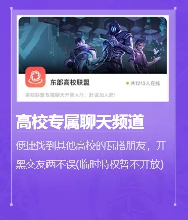 为高校认证玩家打造专属聊天空间,提供便捷的开黑组队与交友频道