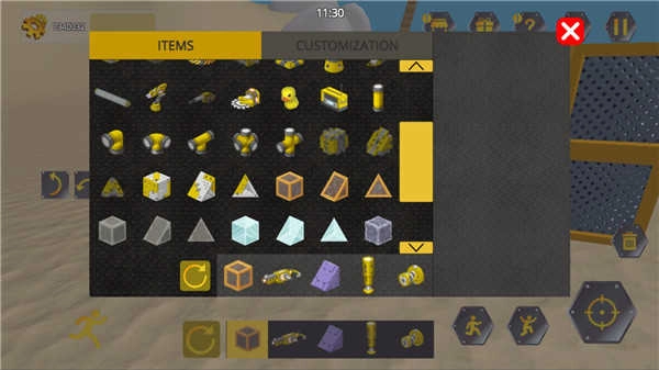 游戏里有各种各样的零部件,还有可以达成不同功能的辅助道具。