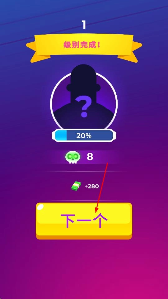 当你成功通过关卡后,会出现结算页面,上面会展示关卡完成的相关信息以及你所获得的奖励等内容,此时点击“下一个”按钮就能进入到下一个关卡。