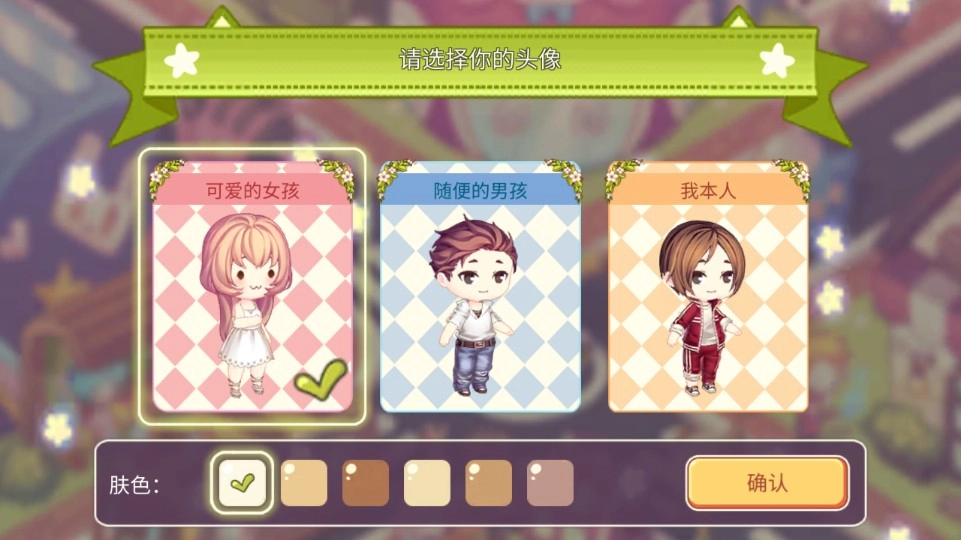选好自己的角色,调整好肤色后,点击【确认】按钮;