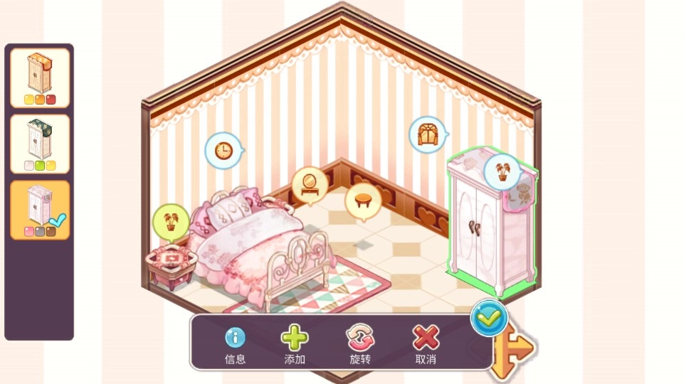 房间内的任意空闲区域都能随意摆放家具,只要用手指点击想放置的位置就能完成摆放操作。
