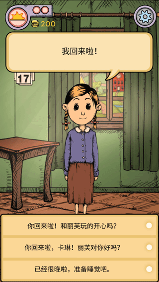 如果要结束这一天可以选择点击卡琳房间的台灯