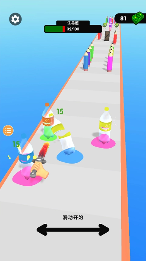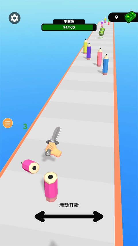 进入游戏首先左右移动剑手可以砍倒铅笔的阻碍