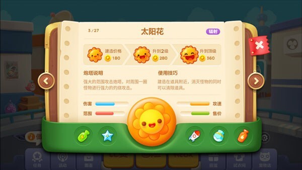 14这里有14座独具特色的防御塔,像鱼刺塔、太阳花、便便塔、船锚塔……还有更多新奇的样式等着你来发现!