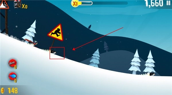 长按屏幕可触发后空翻等滑雪特技,这能提升游戏结算时的最终得分。