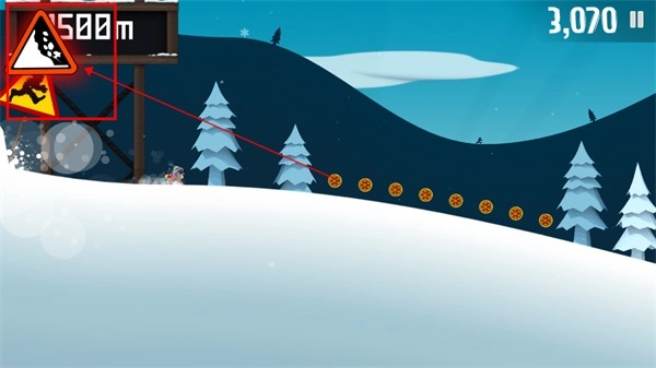 要是右上角的雪崩标志一个劲地晃动、闪烁,那就说明雪崩马上就要追上你了