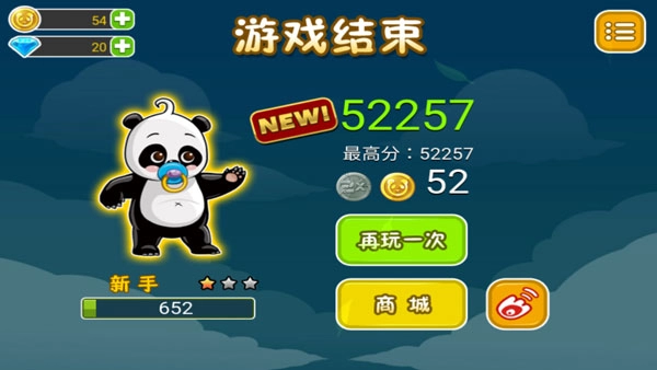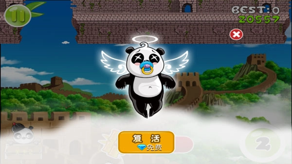 游戏进行时,熊猫会自行往前移动,你仅需轻点屏幕让它完成跳跃或连续跳跃,以此顺利避开障碍并收集道具。 2. 虽然操作看上去很简单,但想拿到好成绩就得玩家既大胆又细心,准确掌控跳跃的时机,还得灵活使用各种道具。 3. 碰到正面过来的敌人时,不妨用“屁弹”技能把它打退;要是不小心掉下去了,记得通过连续放屁的办法来救自己。