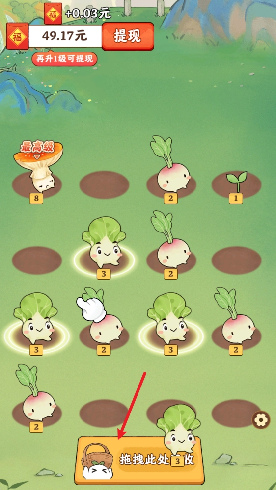 拖动相同的作物让它们重叠,就能合成出更高级的作物。