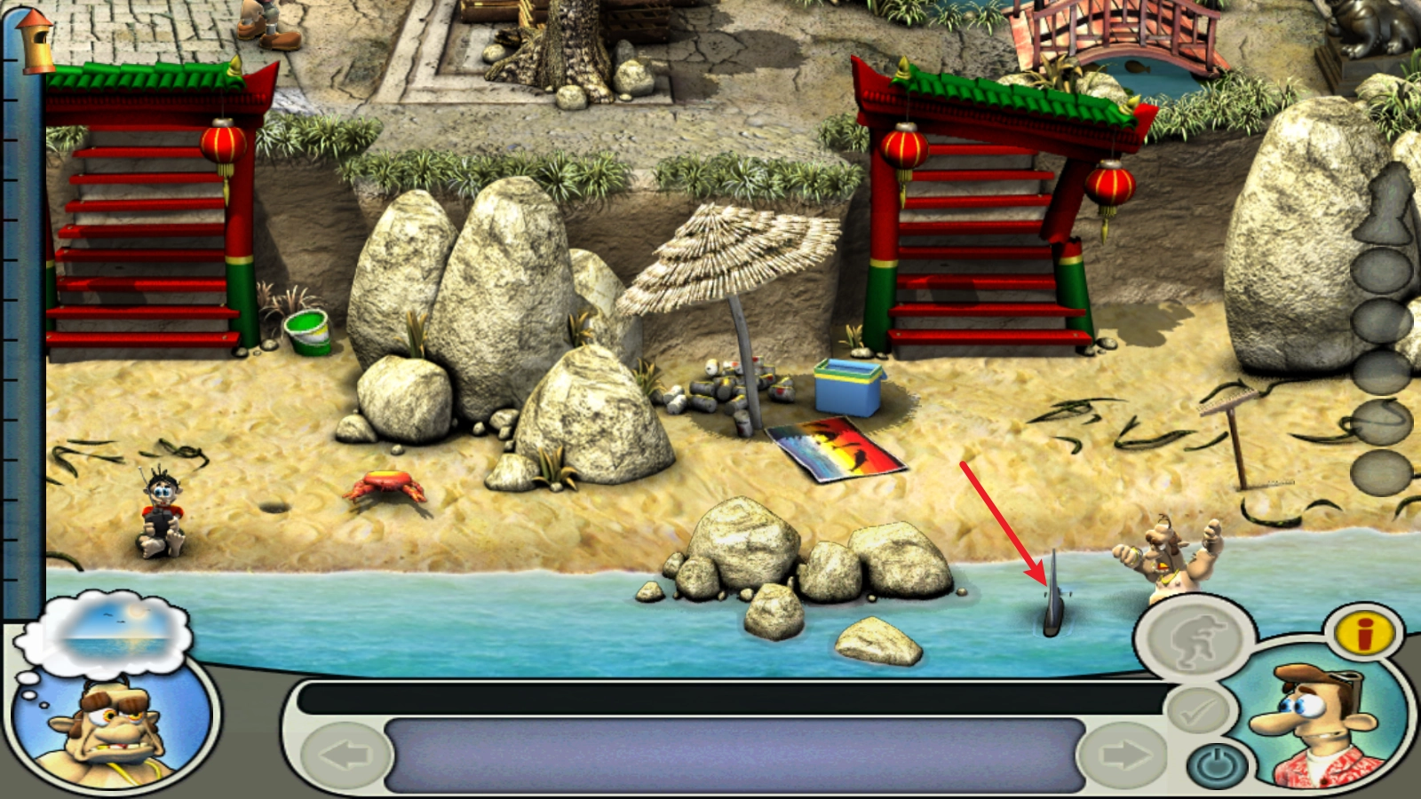 首先从左上角的垃圾桶中找到鲨鱼鳍。