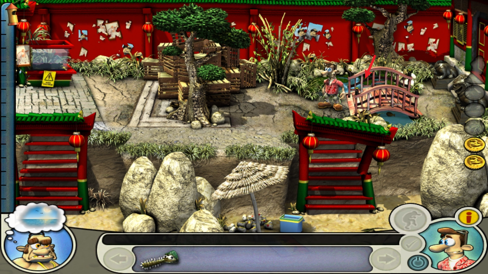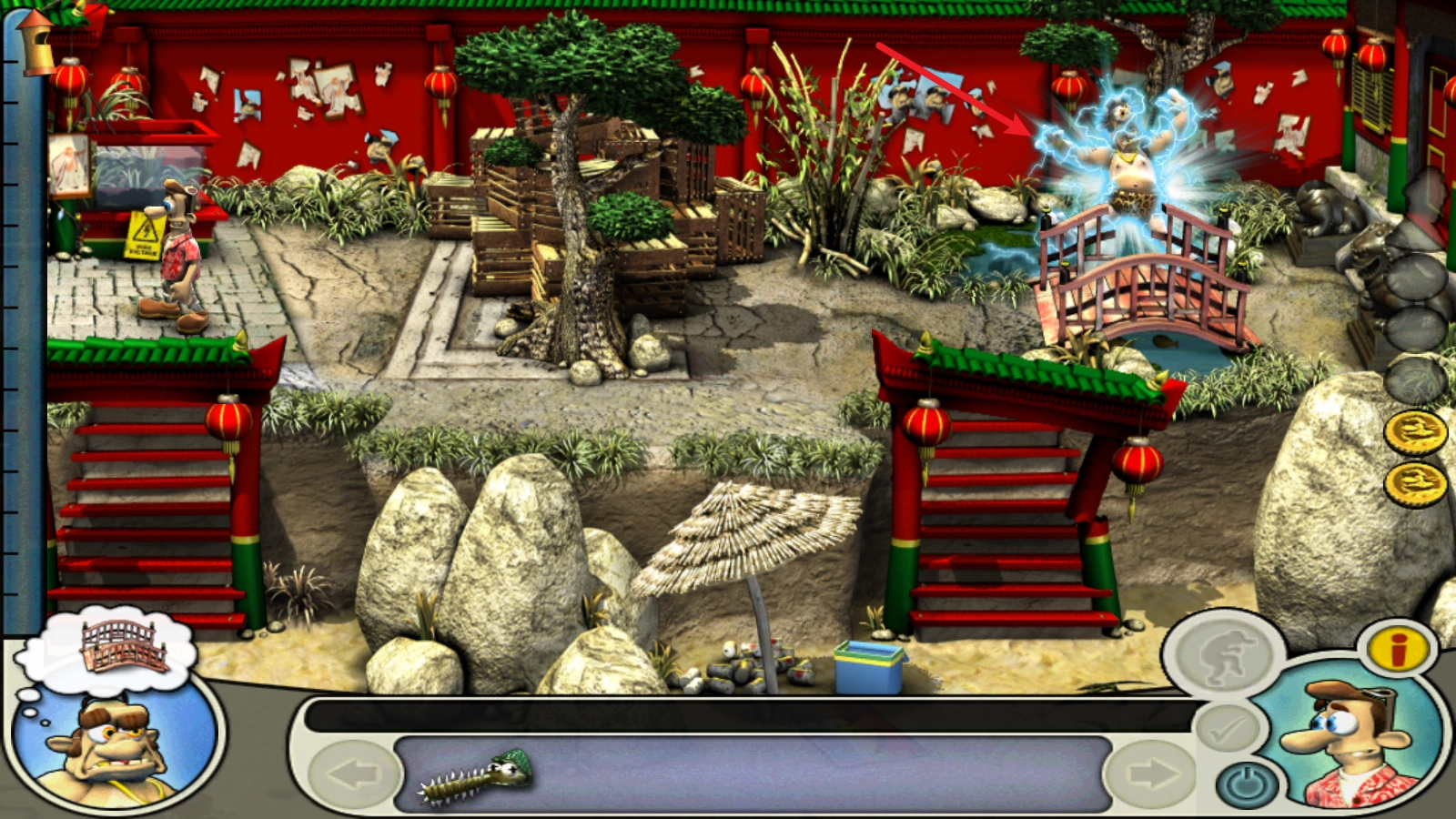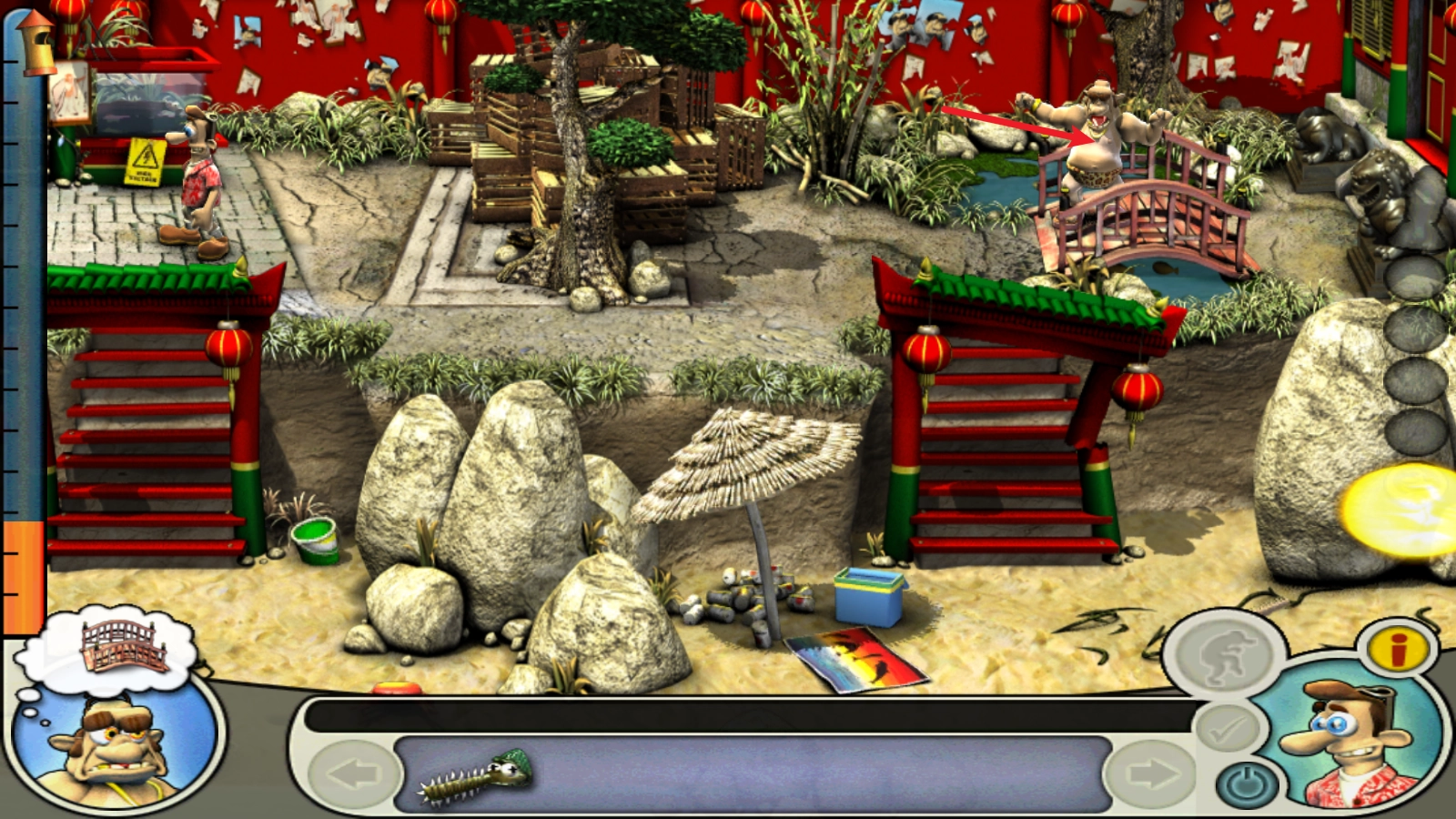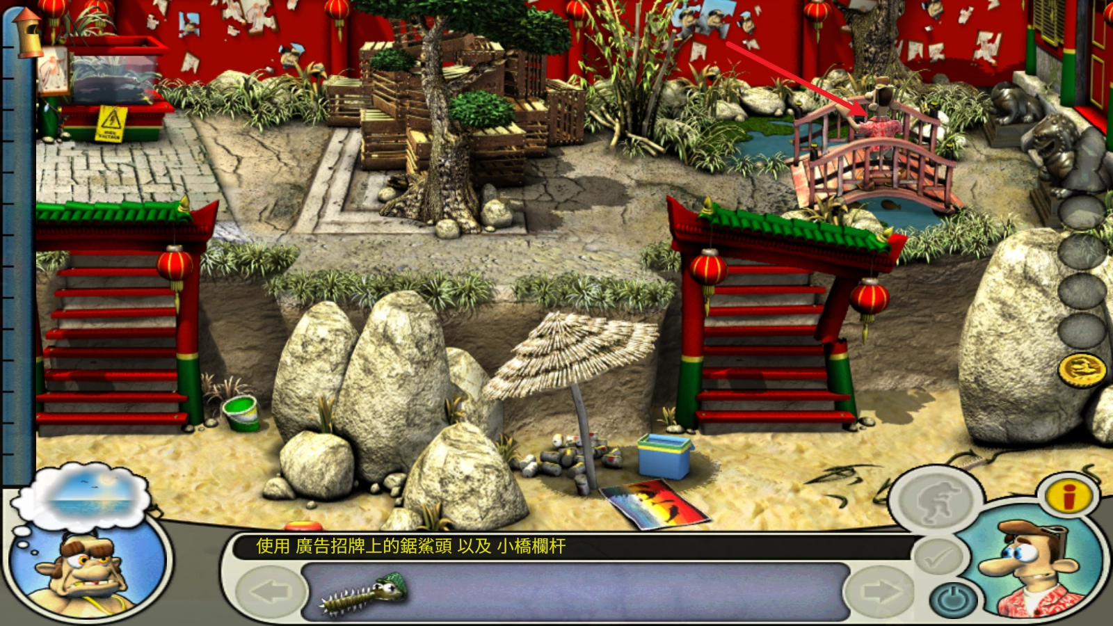 然后利用锔鳐割断右上的小桥栏杆。
