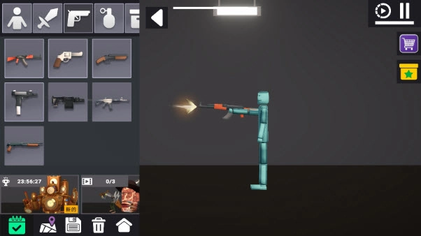 你可以把各类道具拖给角色,像枪械这类,只要拖动它就能让角色开枪。