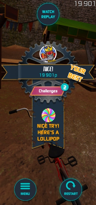之后就能正式进入游戏了,我们得用两根手指各自操控单车的前轮与后轮,通过这种方式来完成各类特技动作。