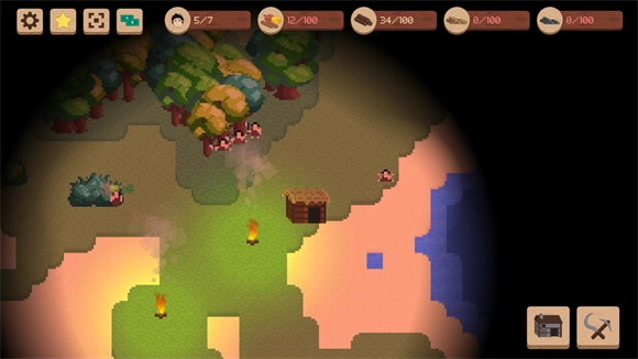 进入地图后点击右下角的房子按钮先建造一个火堆。