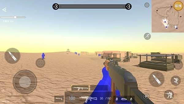 右上角设有地图,对战双方需在战场上达成指定的击杀敌人数目,率先完成目标的一方将获得胜利。